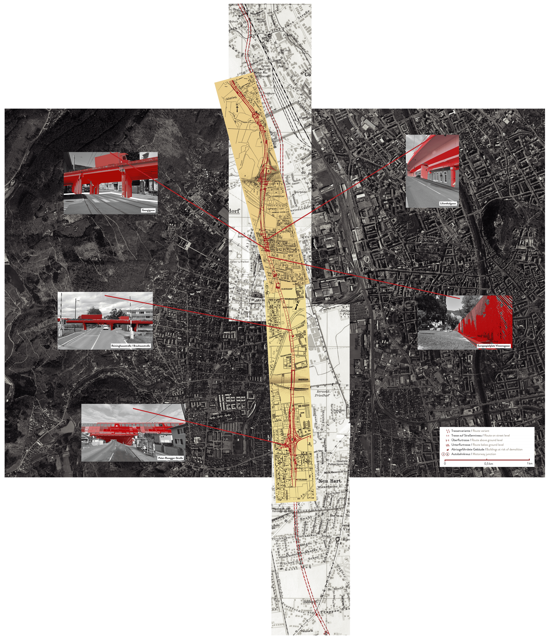 After the Second World War, Graz had to re-erect or build from scratch about half of all buildings. On the outskirts, makeshift settlements were part of the everyday cityscape. Little by little, the areas which belonged to the city since their incorporation in 1938 were randomly populated with one-family and two-family houses.