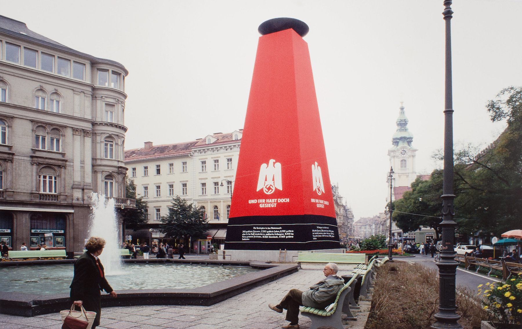 When the artist Hans Haacke reconstructed this huge “monument of victory” over the Marian Column again in 1988 and reinterpreted it as a memento, an arson attack with radical right-wing background took place. The Marian figure was severely damaged and could only be erected again after extensive restoration in 1990.