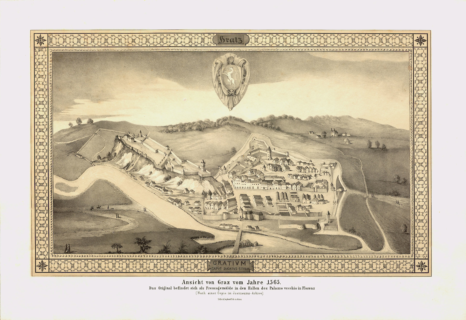 Graz from the West in 1565 (“Florentiner Ansicht“, i.e. Florentine View) Anonymous, 1866