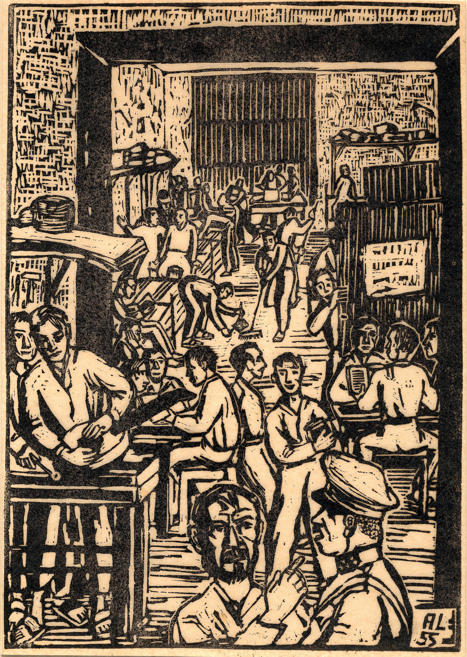 As cultural editor of the social democratic newspaper Arbeiterwille and as a member of the Republican Protection League, Axl Leskoschek was interned twice in the Wöllersdorf detention camp: after the February Uprising of 1934 and because of forbidden political activity in 1936. The second time, he was detained although he had serious health problems. Under pressure from the British Labour Party, Leskoschek, like other social-democrat detainees, was finally released. During his detention he worked on watercolours, allegorical works with hidden criticism of the regime of the “Corporative State” dictatorship. In 1955, Leskoschek created the “Series of Contemporary History” from memory, in which he reproduced events of the First Republic and the Corporative State dictatorship; among these the sheet “Kirschenrummel” (Cherry Rage).