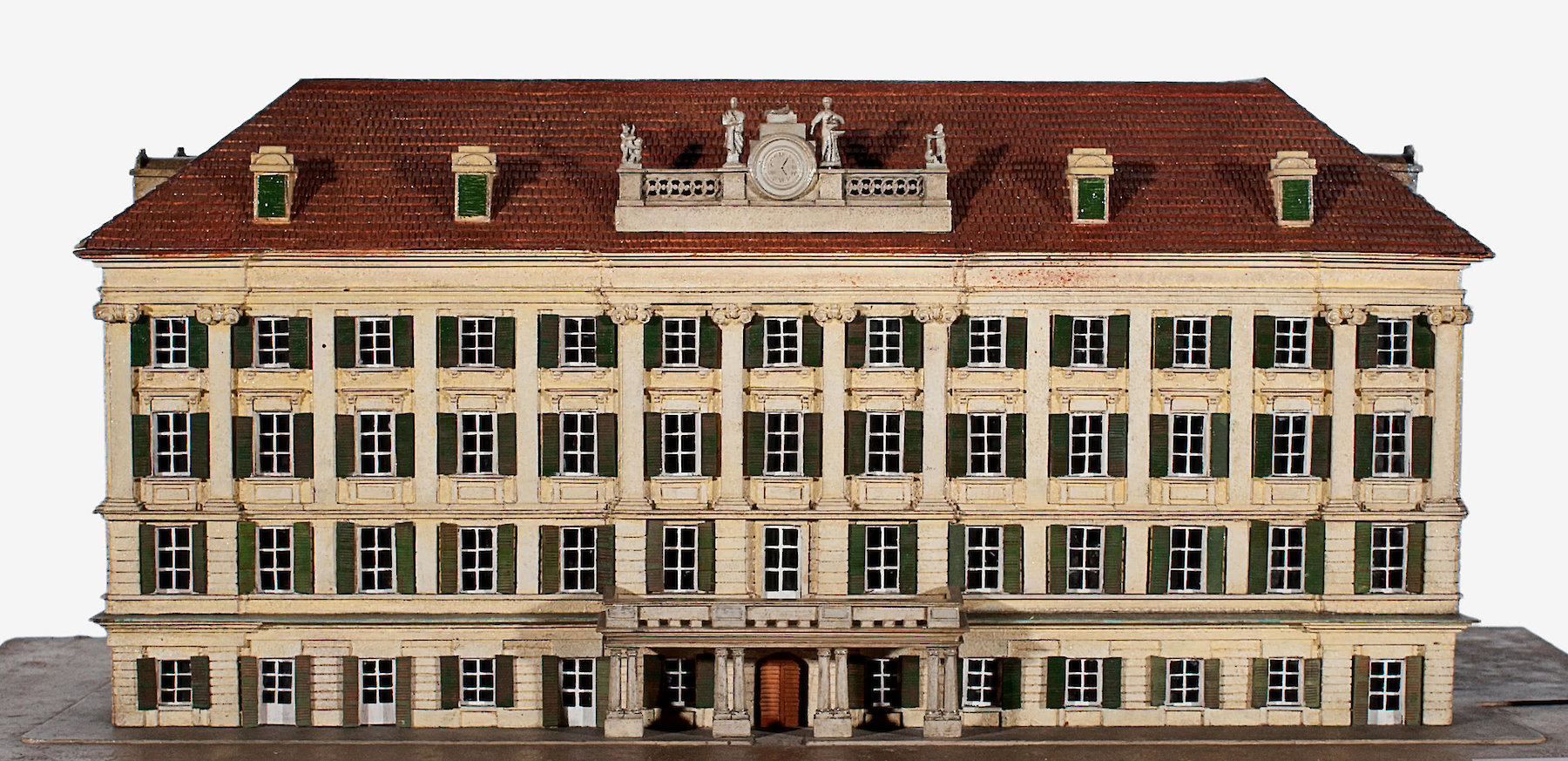 Around 1550, a new Renaissance city hall was built in Graz, the first of three buildings on the site of today’s Graz City Hall on Main Square. It had a loggia, a ridge turret with lantern and, also a city hall clock since the early 17th century. On the ground floor, an arcade for trade was connected to the plain building. Behind the small windows on the third floor there was the prison. In the early 19th century, it gave way to the classicist, much larger new building.