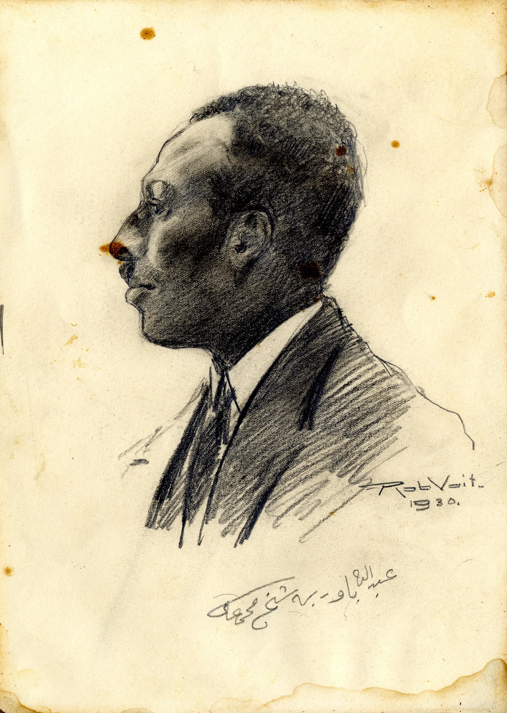 Das Porträt zeigt Abdullah Javer, der 1894 im Königreich Wadai in Zentralafrika geboren wurde und in den späten 1920er-Jahren nach Graz kam, wo er bis zu seinem Tod 1943 lebte. Er war Türkisch-Sprachlehrer und Reklameportier. Grazer*innen kennen ihn als romantische Verklärung des „schwarzen Liftboys“ des Traditionskaufhauses Kastner & Öhler. Anfang des 20. Jahrhunderts setzten viele europäische Warenhäuser auf derartige „exotische“ Attraktionen, um das Flair der großen, weiten Welt zu verbreiten.