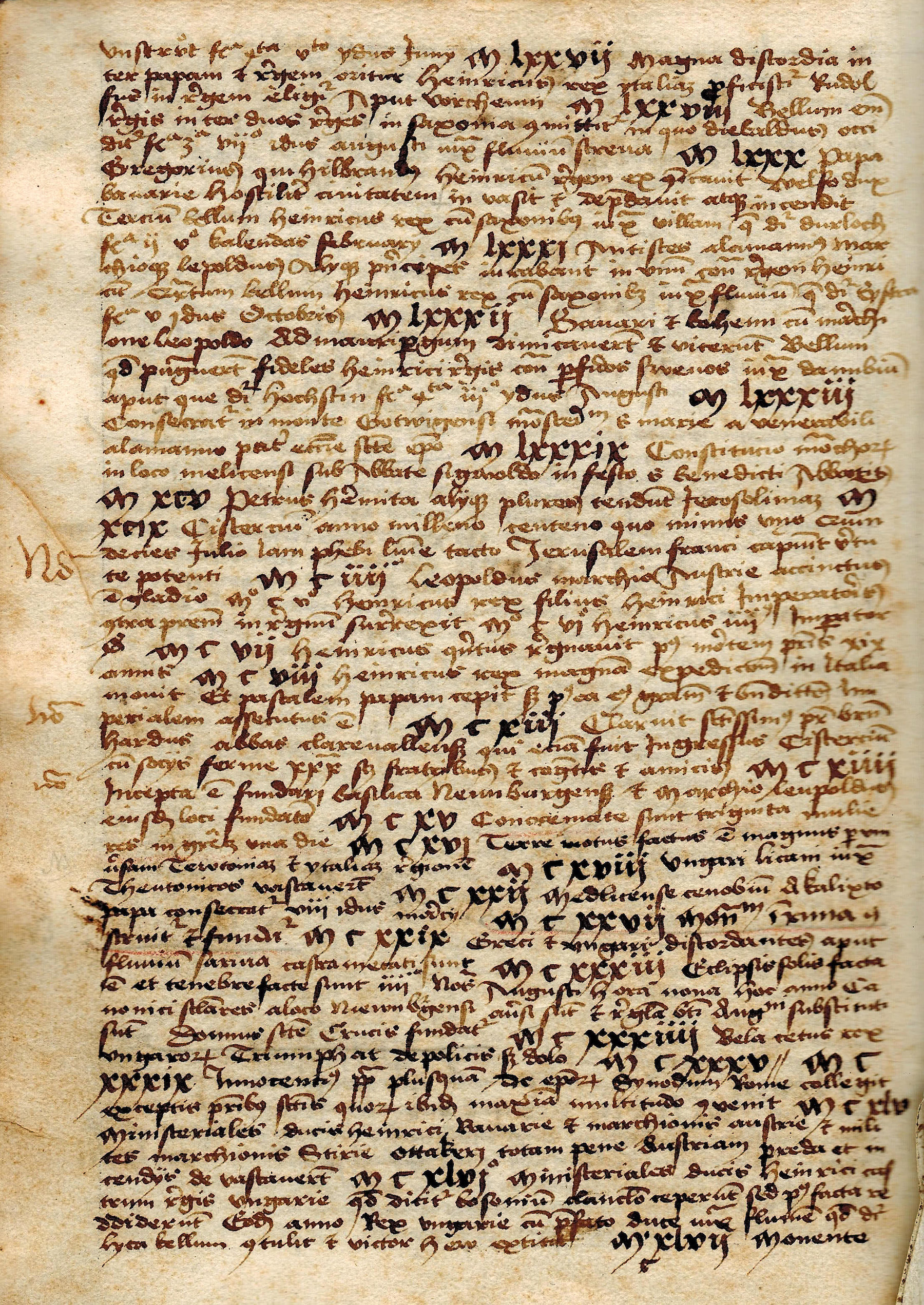 Ab 1164 besaßen die Mönche des Stiftes Rein eine Liegenschaft unter der Burg, auf der sich heute der Reinerhof und das GrazMuseum befinden. In dem Ausschnitt der „Reiner Annalen“ wird Graz zum ersten Mal erwähnt. Der Zusammenhang gibt jedoch bis heute Rätsel auf. Der Text wurde so verstanden, dass im Jahre 1115 an einem Tag 30 Frauen in einem Feuer umkamen und dies mit der Hexenverbrennung in Verbindung gebracht. Heutige Forscher/-innen gehen allerdings von Übertragungsfehlern aus, denn zwischen dem Vorfall und der Entstehung des Textes liegen weit mehr als 200 Jahre. So könnte es sich nicht um Frauen, sondern um Häuser gehandelt haben, oder nicht einmal von Graz die Rede sein – und das sind nur zwei der Thesen.