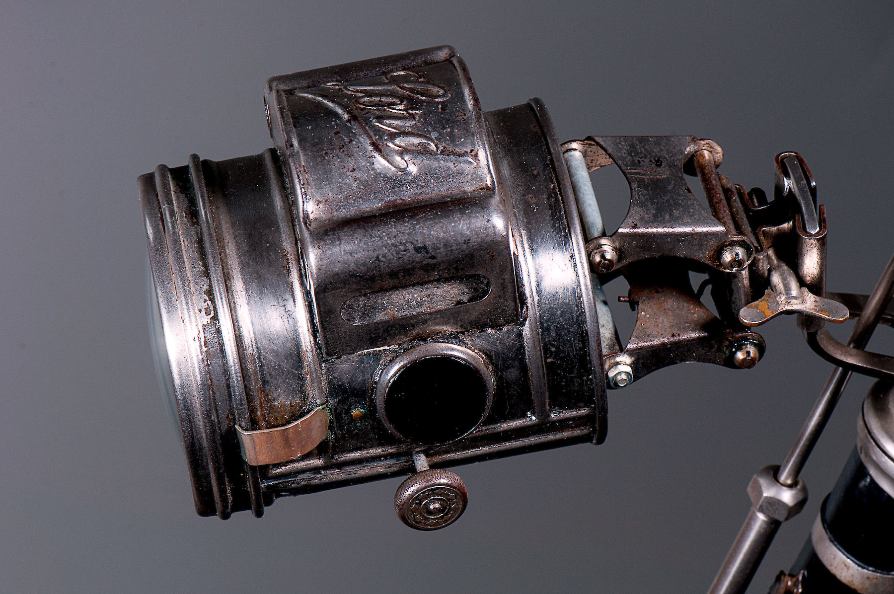 Das Damenfahrrad aus dem Jahr 1900 verfügt typischerweise nicht nur über ein Kleidernetz, sondern auch über eine Karbidlampe als Lichtquelle. Diese Gaslampe war ab den 1890ern für Gebäude, Fahrräder und andere Fahrzeuge in Gebrauch. Als Brennstoff diente Calciumcarbid, das in Verbindung mit Wasser Ethin-Gas zur Entzündung freisetzte. Karbidlampen waren teils bis in die 1950er-Jahre beliebt, weil sie sehr leicht, hell und relativ günstig waren. Danach wurden sie von elektrischer Beleuchtung verdrängt.